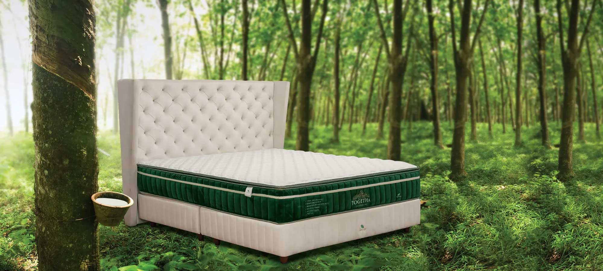 The first mattress in Malaysia. The Togetha 100 Gold is a premium multilayer 100% natural latex mattress. It is the only electromagnetic field (EMF) sleep solution available, featuring a natural wild silk layer for breathability and moisture-wicking, and wool top quilting for natural insulation and comfort.